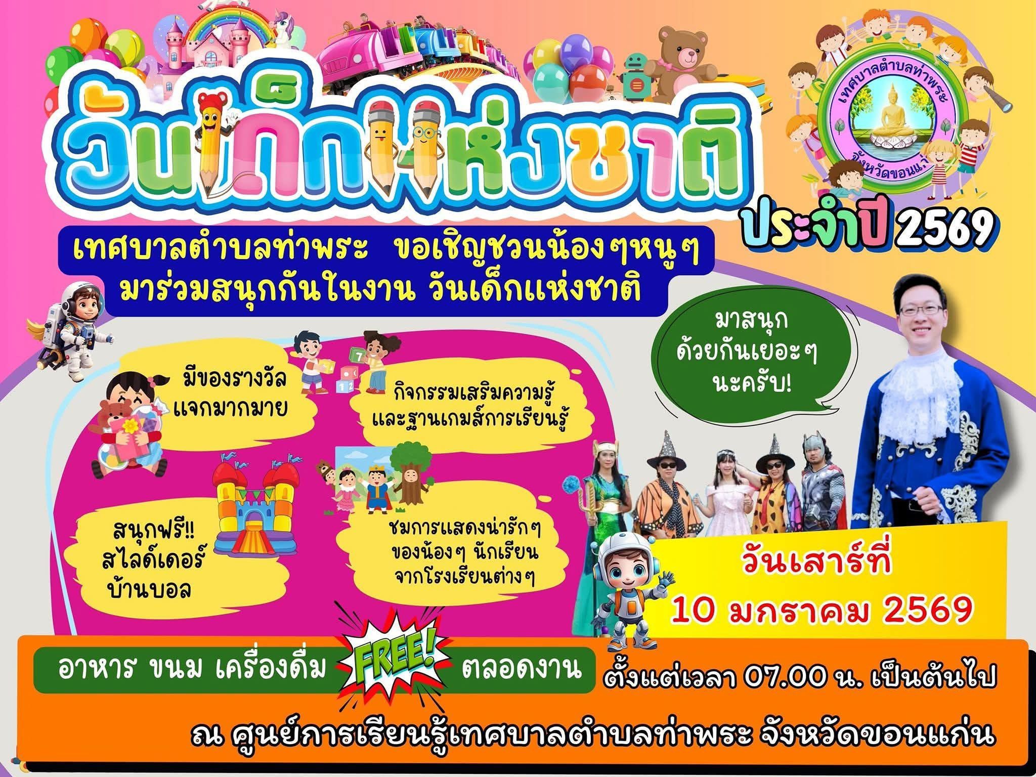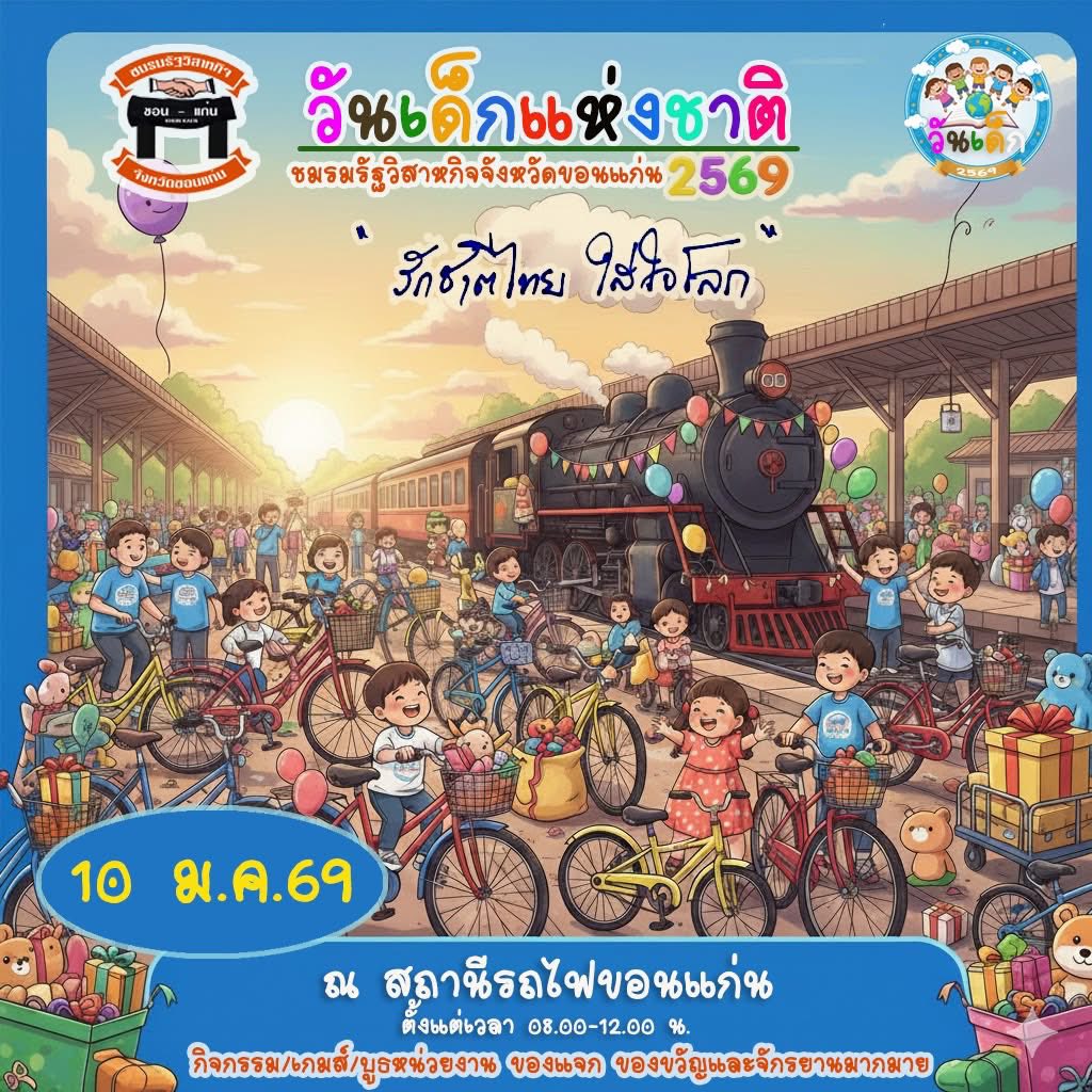 ซึ่งปีนี้วันเด็กจะตรงกับวันจัดงาน Khon Kaen International Marathon 2026 (วันแรก) พอดีเลยครับ ทำให้บรรยากาศในขอนแก่นน่าจะคึกคักเป็นพิเศษ ทั้งงานวิ่งและกิจกรรมวันเด็กครับ