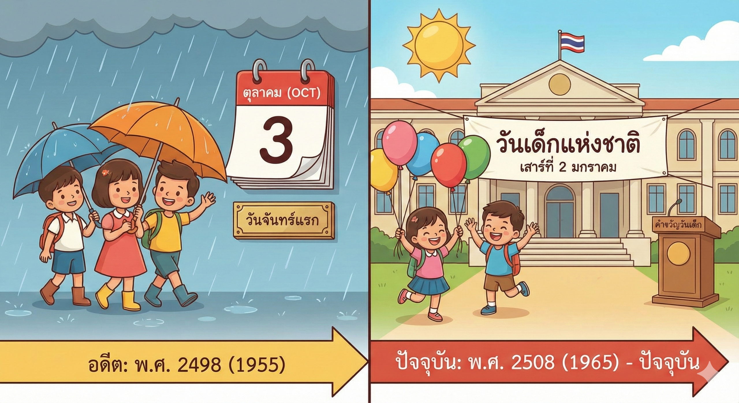 วันเด็กแห่งชาติ ประวัติวันเด็กแห่งชาติของไทย มีความเป็นมาที่น่าสนใจและมีการเปลี่ยนแปลงสำคัญเกิดขึ้นเพื่อให้เหมาะสมกับสภาพอากาศและวิถีชีวิตของคนไทยครับ สรุปได้ดังนี้ครับ: