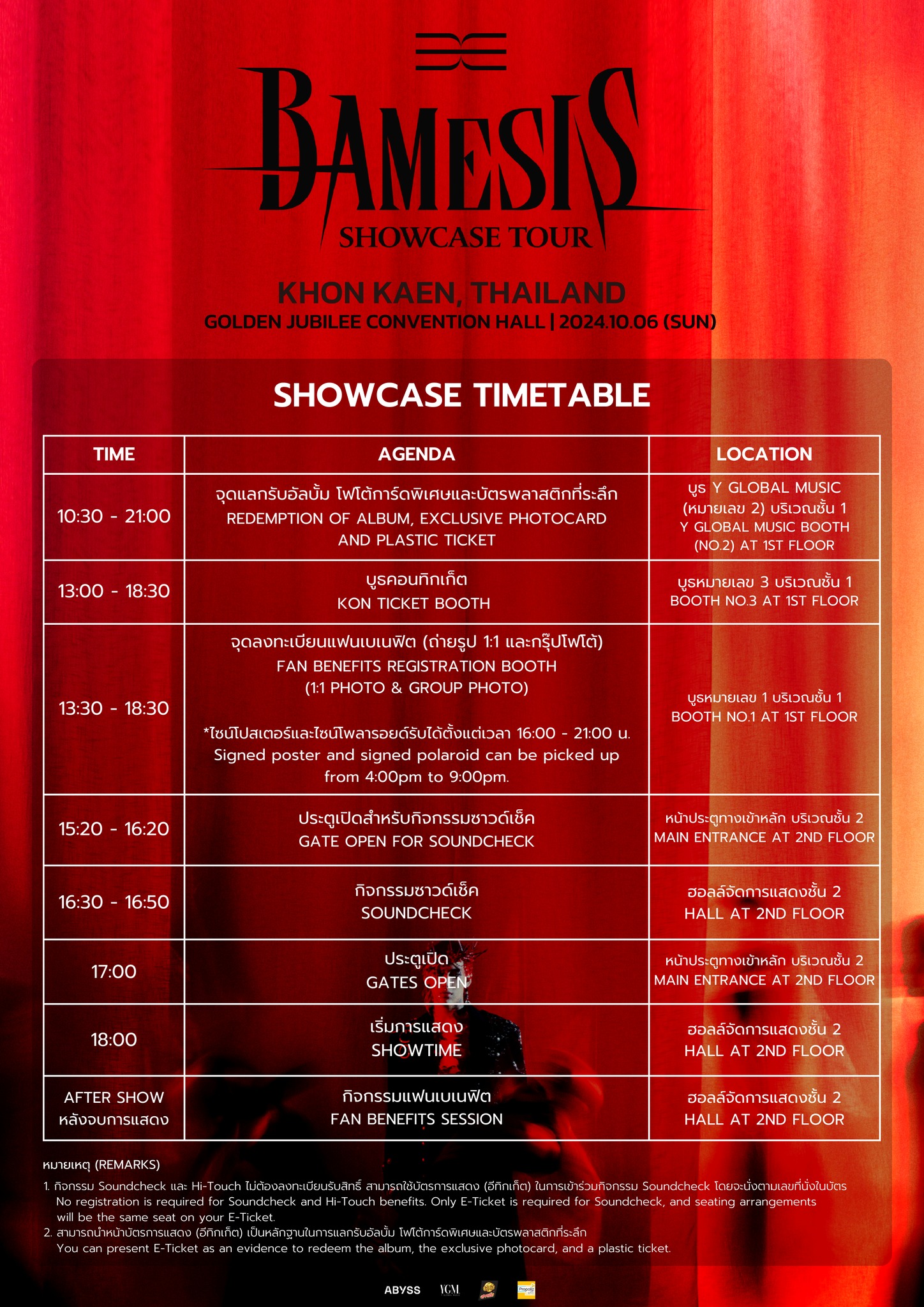 ประกาศเกี่ยวกับกำหนดการงานโชว์เคส แผนผังบริเวณหน้างานและ