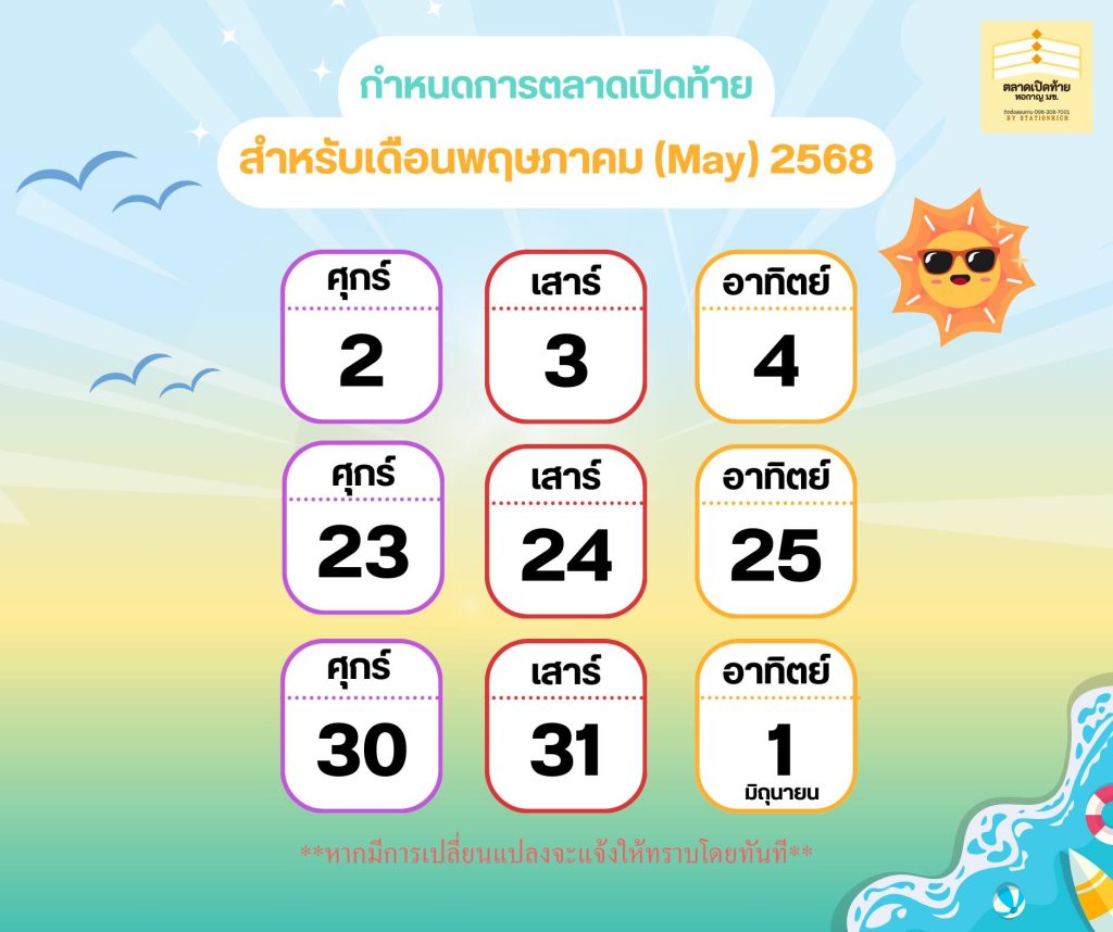 กำหนดการตลาดเปิดท้าย สำหรับเดือนพฤษภาคม 2568
